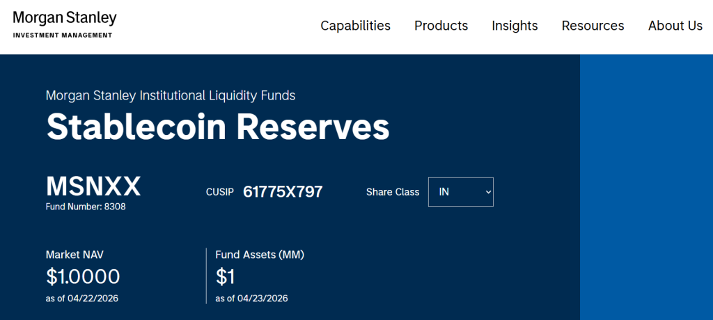 傳統金融(TradFi)與去中心化金融(DeFi)的黃金交叉:大摩推「穩定幣儲備組合」MSNXX,揭開機構級數位資產新紀元。