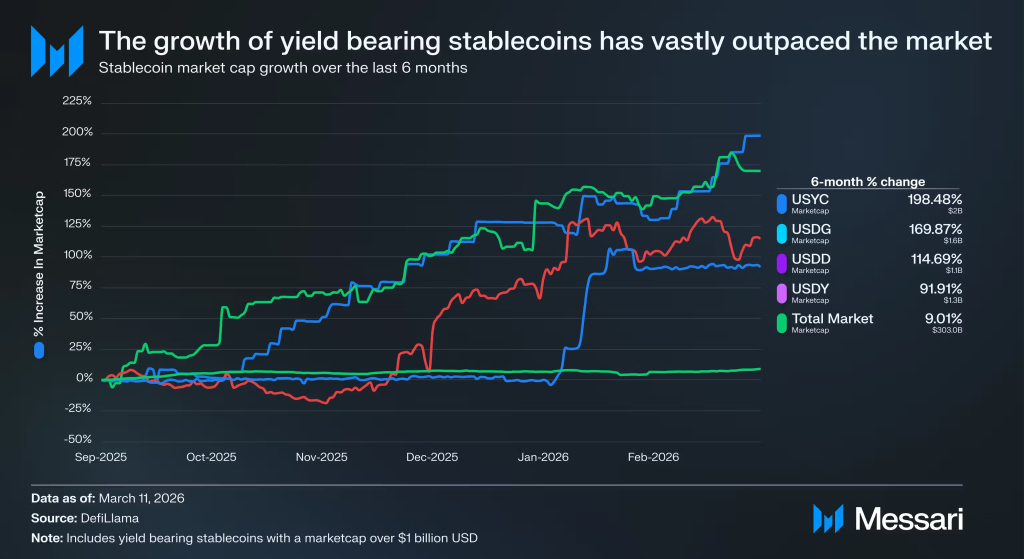 - 增長率對比: Messari 數據顯示,過去半年,帶息型穩定幣的供應量增速是傳統穩定幣的 15 倍。
